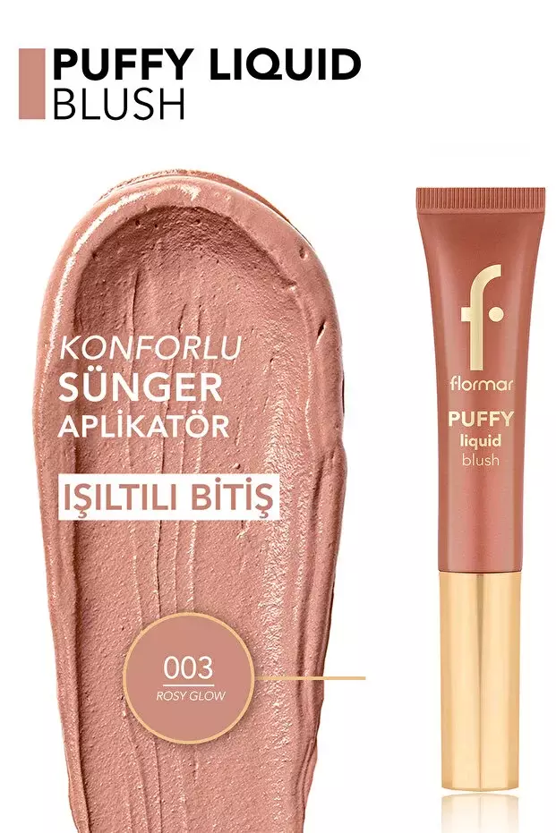Flormar Puffy Liquid Blush, cildine doğal bir ışıltı ve taze bir renk kazandırmak için geliştirilmiş likit formüllü bir allıktır. Nemlendirici etkili yapısı sayesinde cilde pürüzsüz bir dokunuş sunar, gün boyu canlı ve sağlıklı bir görünüm sağlar.