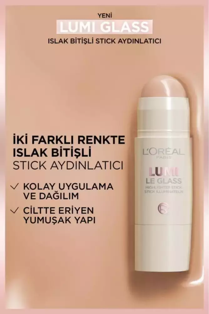 L’Oréal Paris Lumi Glow Glass Stick Aydınlatıcı, cilde adeta cam gibi bir parlaklık kazandıran, ıslak bitişli stick formda bir aydınlatıcıdır. Kremsi yapısıyla cilde kolayca sürülür, yapışkanlık hissi bırakmadan taze ve nemli bir görünüm yaratır.