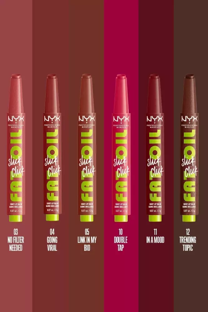 NYX Professional Makeup Fat Oil Slick Click, dudak balmı kategorisinde hem renk hem de bakım sunan yenilikçi bir üründür. Bu dudak balmı, tıklama mekanizmalı (click-up) ambalajıyla dikkat çeker ve tam Needed miktarda ürün çıkararak kolay ve pratik bir uygulama sağlar. Hafif, katmanlanabilir yapısıyla 12 saate kadar nemlendirme vaat eder. İçeriğinde avokado yağı, ahududu yağı ve yaban mersini yağı gibi vegan bileşenler bulunur; bu yağlar dudaklara yoğun bir bakım sunarken yapışkan olmayan, parlak bir bitiş bırakır. 12 farklı renk tonuyla sunulan bu balm, her cilt tonuna uygun seçenekler içerir ve günlük kullanıma ideal bir hafif pigmentasyon sağlar.