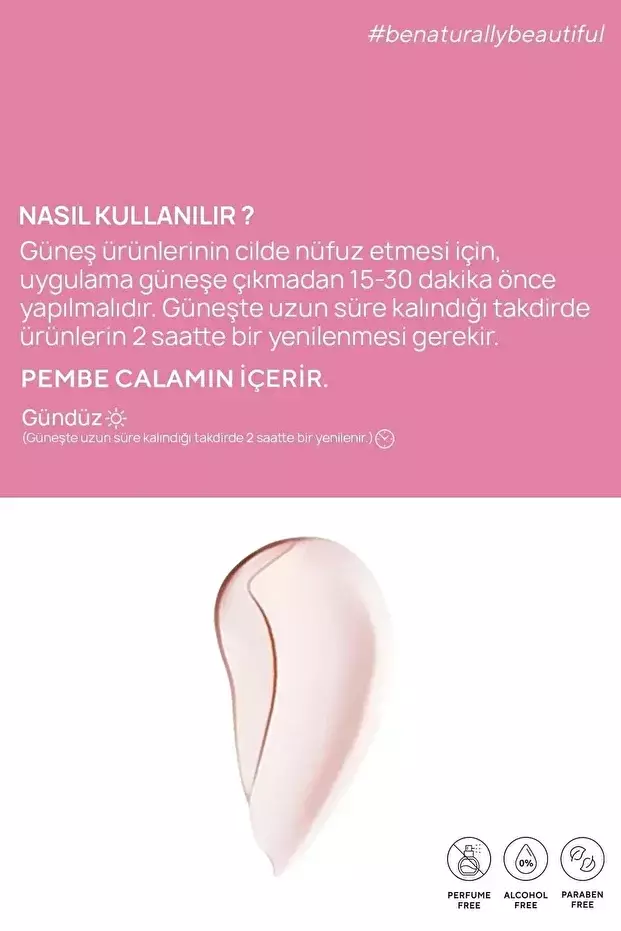 The Ceel Leke Karşıtı Ton Eşitleyici SPF 50 Pembe Renkli Güneş Kremi, cildinizi UVA/UVB ışınlarının zararlarından korurken leke oluşumunu önler ve tonu eşitler. Glutatyon içeriğiyle ciltte aydınlanma sağlayarak leke tedavisine destek olur, hyaluronik asit ise derin nemlendirme ve dolgun bir görünüm kazandırır. Pembe kalamin formülü, kızarıklıkları hafifletir ve doğal pembe bir ışıltı verir. Panthenol ile cildi besleyen bu hafif dokulu krem, her cilt tipi için uygundur; makyaj altı veya tek başına kullanıma idealdir. Güneşe çıkmadan 15-20 dakika önce uygulayın, gün boyu fresh ve korunmuş bir cilt için mükemmel!